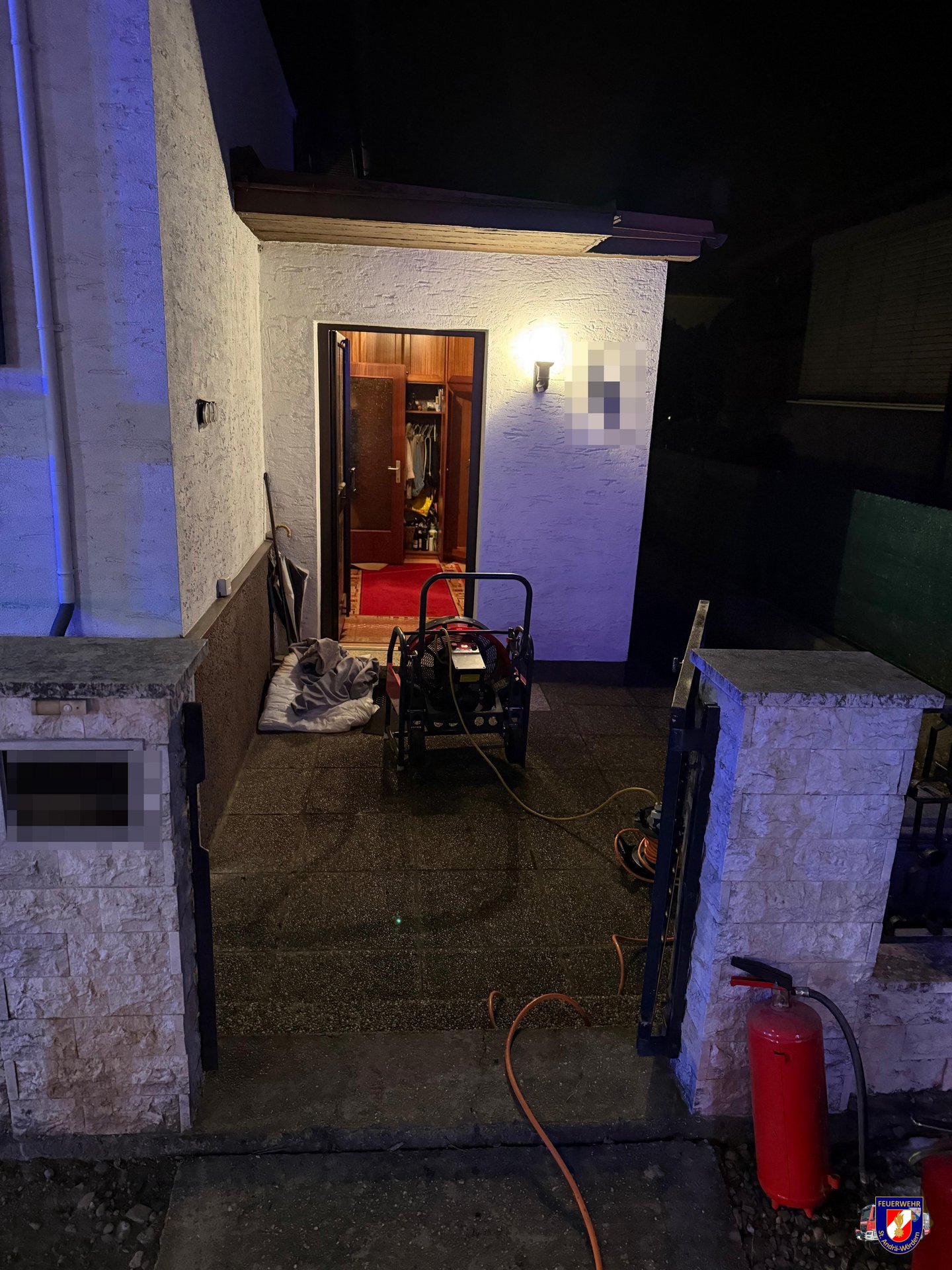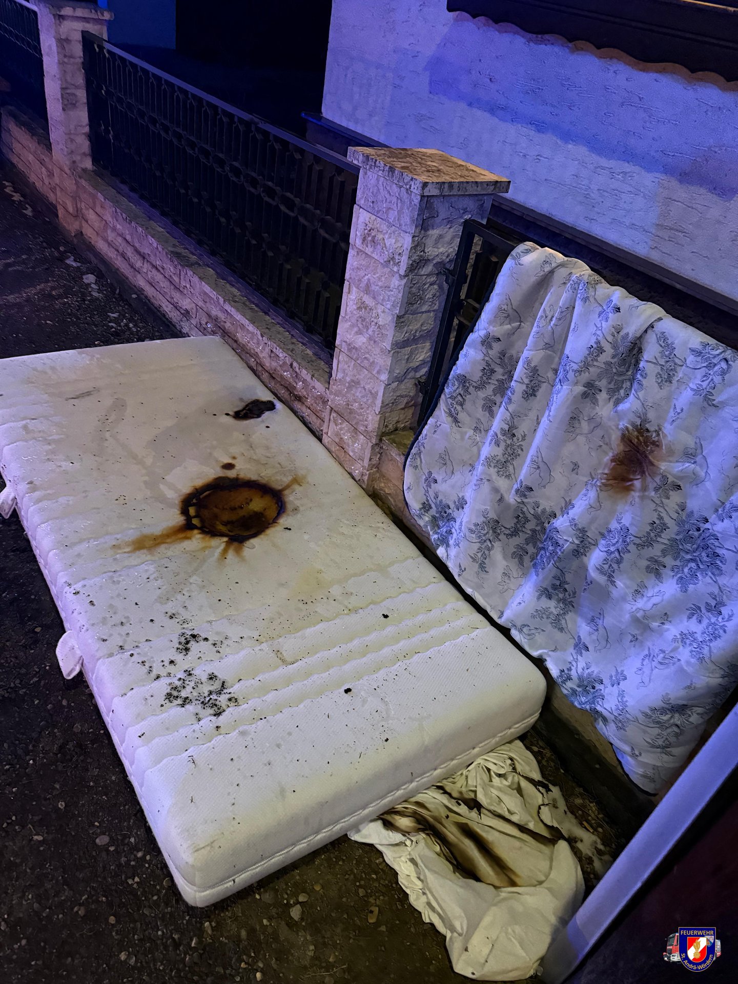 Am Einsatzort angekommen, stellte man fest, dass eine Matratze noch geglost hatte. Weitere kleinere Brandlasten hatte die Eigentümerin bereits selbst aus dem Fenster geworfen. Mittels Hochleistungslüfter wurde eine Druckbelüftung aufgebaut. Restliche, abgebrannte Gegenstände wurden ins Freie verbracht und nochmals gezielt abgelöscht.
