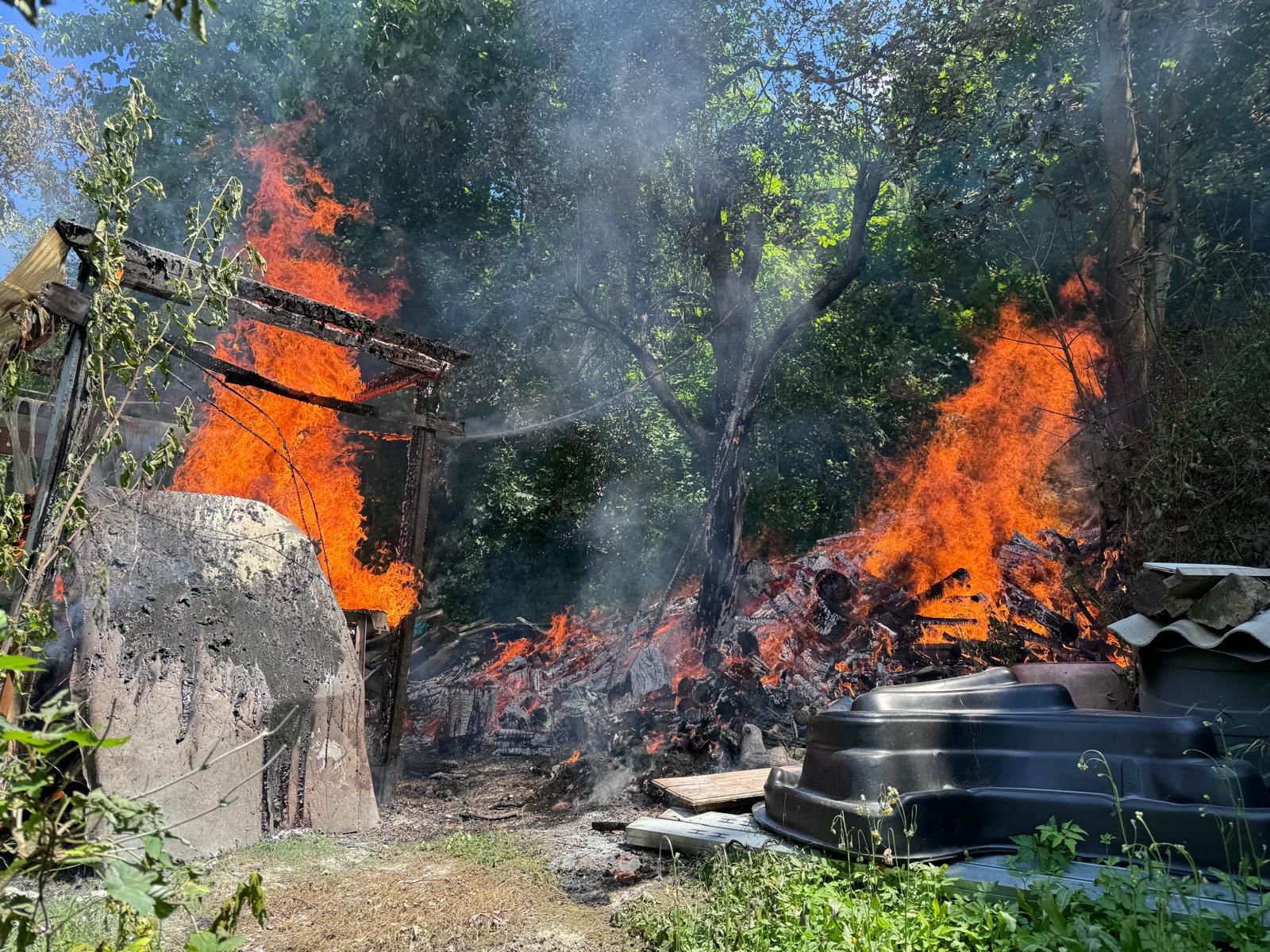 Aus noch ungeklärter Ursache stand eine Gartenhütte im Vollbrand.