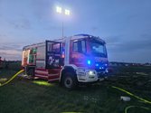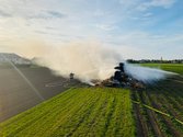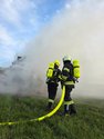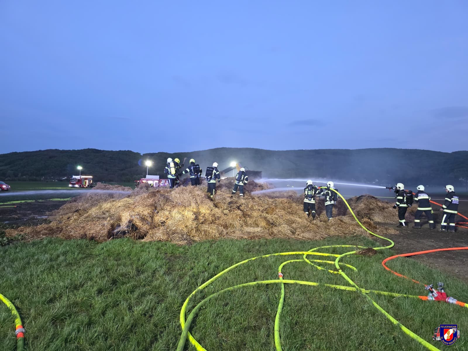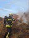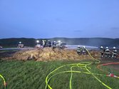 Aus unbekannter Ursache stand ein großer Stapel Strohballen in Flammen.