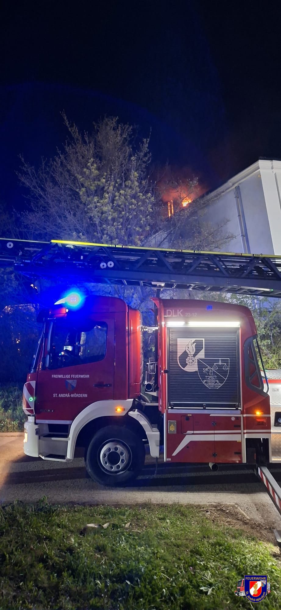 Die Feuerwehr St. Andrä-Wördern unterstützte die Brandbekämpfung mittels Drehleiter und stellte zwei Atemschutztrupps bereit. Mittels einer Rettungssäge wurde die Dachhaut eröffnet und das Feuer gezielt abgelöscht.