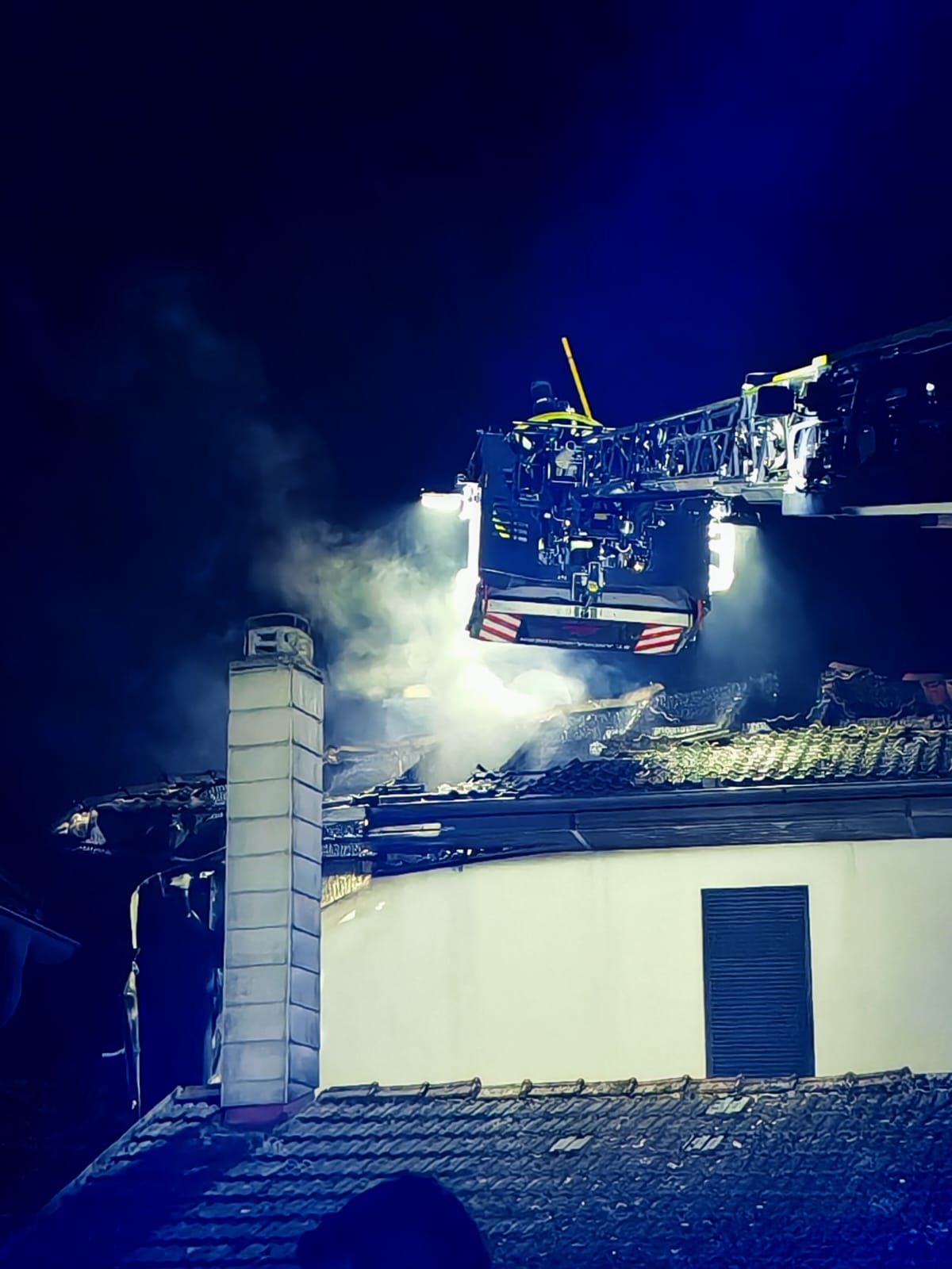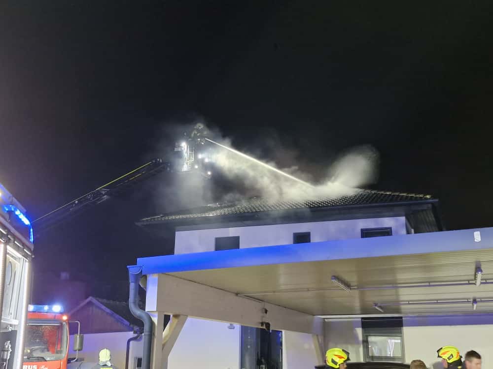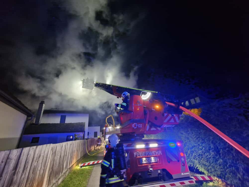 Aus unbekannter Ursache brach im Bereich eines Wintergartens ein Brand aus, der anschließend auf den Dachstuhl des Wohnhauses übergriff.