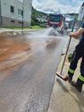 Im Anschluss wurde mit dem Frontmonitor des Hilfeleistungsfahrzeuges (HLF3) mehrmals die Fahrbahn im erforderlichen Maße gereinigt.