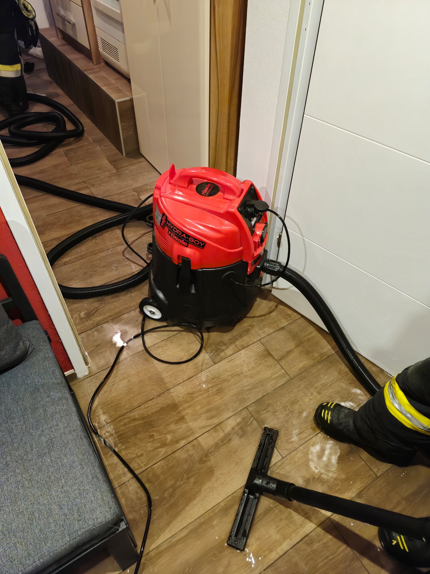 Mittels Nasssauger und mehreren Wasserschiebern konnte der Keller so weit als möglich trocken gesaugt werden. Aus Sicherheitsgründen wurde die Therme vom Stromnetz genommen und das gesamte Haus mittels Kohlenmonoxid-Warngerät "frei" gemessen. Die Besitzer des Hauses wurden für die weitere Vorgehensweise an eine Fachfirma verwiesen.