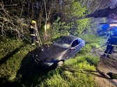 Aus unbekannter Ursache war ein Kraftfahrzeug von der Fahrbahn abgekommen und in einem angrenzenden Wald liegen geblieben.