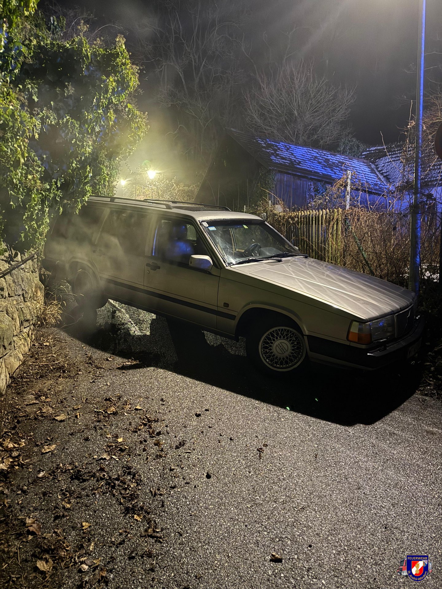 Während der Anfahrt zum Einsatzort wurde ein weiteres manövrierunfähiges Fahrzeug gesichtet. Es konnte mit der Muskelkraft der Einsatzkräfte zurück in eine Hauseinfahrt geschoben werden.