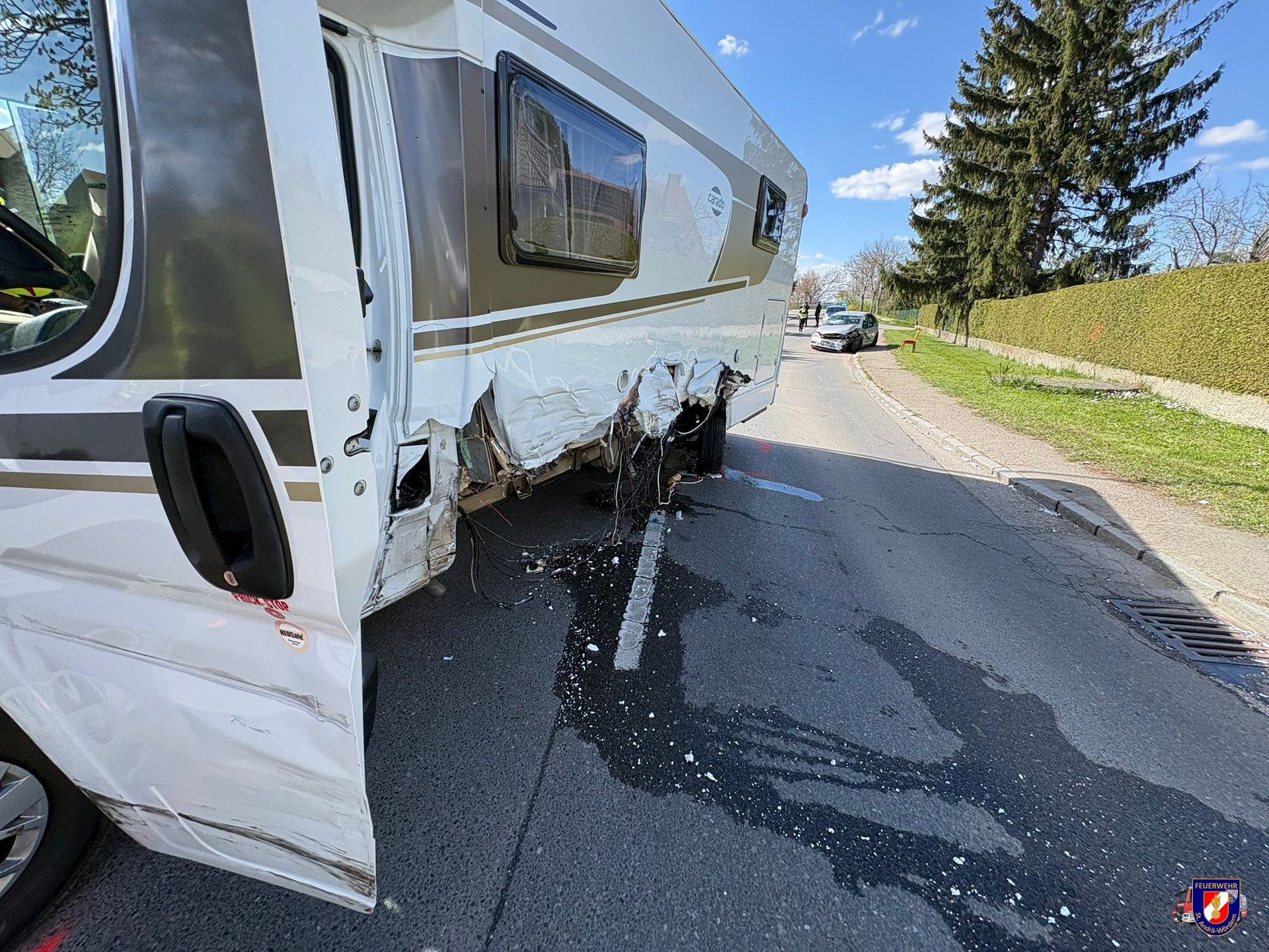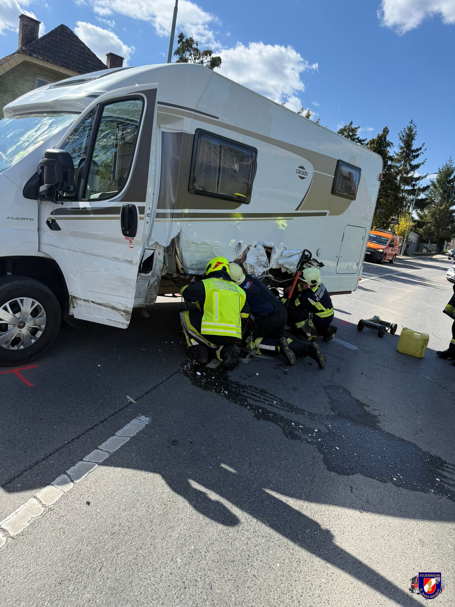 Das Wohnmobil wurde durch die Feuerwehr Zeiselmauer unter Zuhilfenahme von Rangierrollern an einem von der Polizei definierten Ort abgestellt. Der Personenkraftwagen wurde unter Zuhilfenahme der Hubbrille des schweren Rüstfahrzeugs angehoben und ebenfalls von der Fahrbahn entfernt. Die ausgetretenen Betriebsstoffe wurden durch die ortszuständige Feuerwehr Zeiselmauer im erforderlichen Maße entfernt.