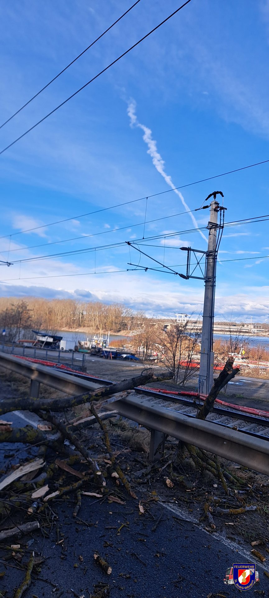 Wie bereits im Alarmtext erwähnt, befand sich ein Baum über der Straße und war möglicherweise auch in einer Oberleitung verankert. Bis zum Eintreffen war nicht eindeutig klar, ob dieser auch in die Infrastruktur der Bundesbahn hineinreichen würde. Daher wurde zusätzlich der Einsatzleiter der ÖBB und die Polizei zum Einsatzort mit alarmiert.