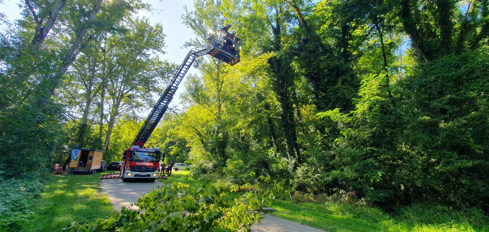 Am 11. August um 15:50 Uhr wurde die Feuerwehr St. Andrä-Wördern zu einem umgestürzten Baum im Bereich eines Parkplatzes des Altarms Greifenstein alarmiert.