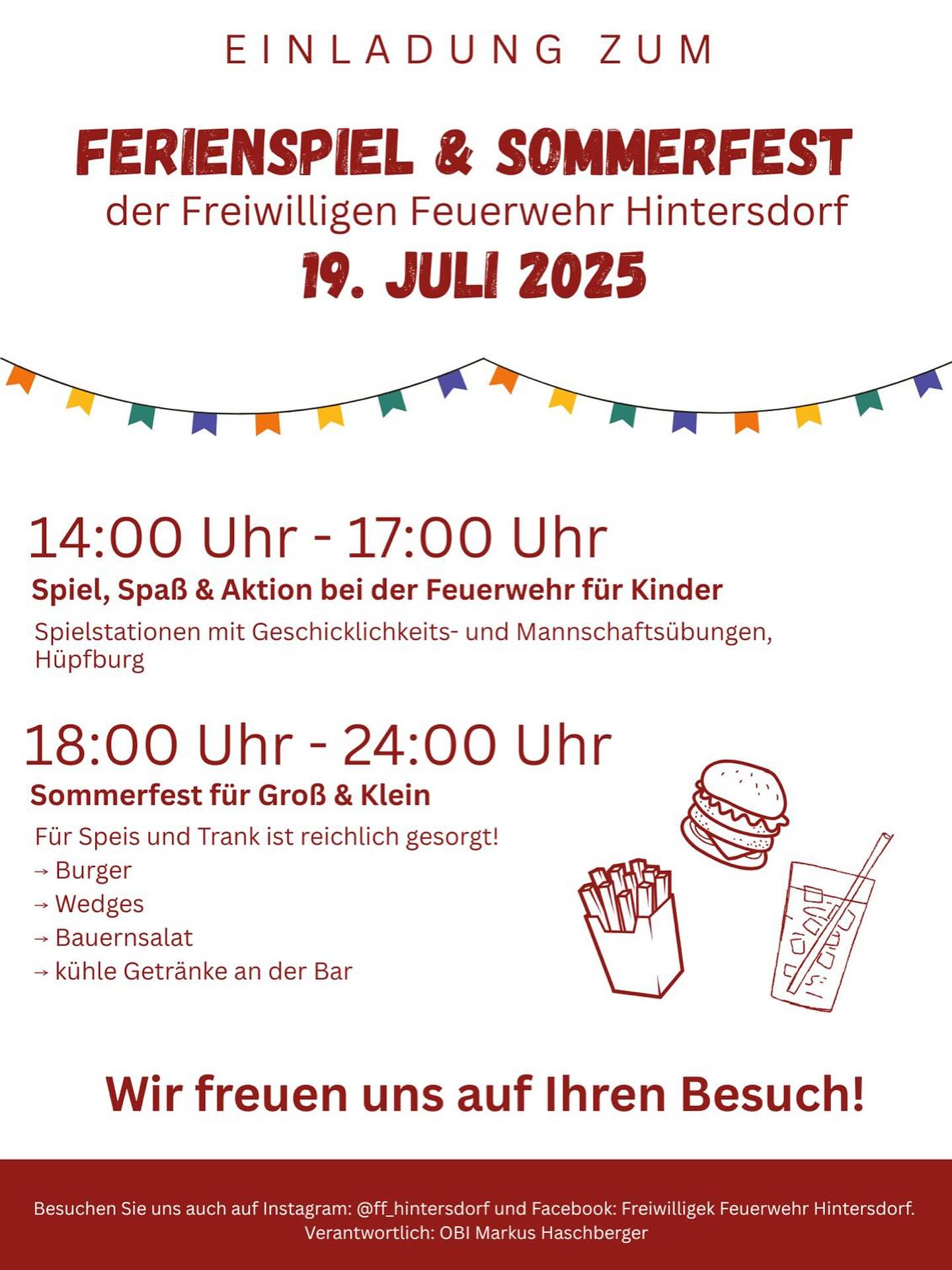 Nach einem tragischen medizinischen Notfall liegt Manuel, ein Kamerad der Feuerwehr Hintersdorf, im künstlichen Koma. Leider besteht weiterhin Lebensgefahr. Mit dem Erlös des heurigen Sommerfestes soll er und seine Familie unterstützt werden.