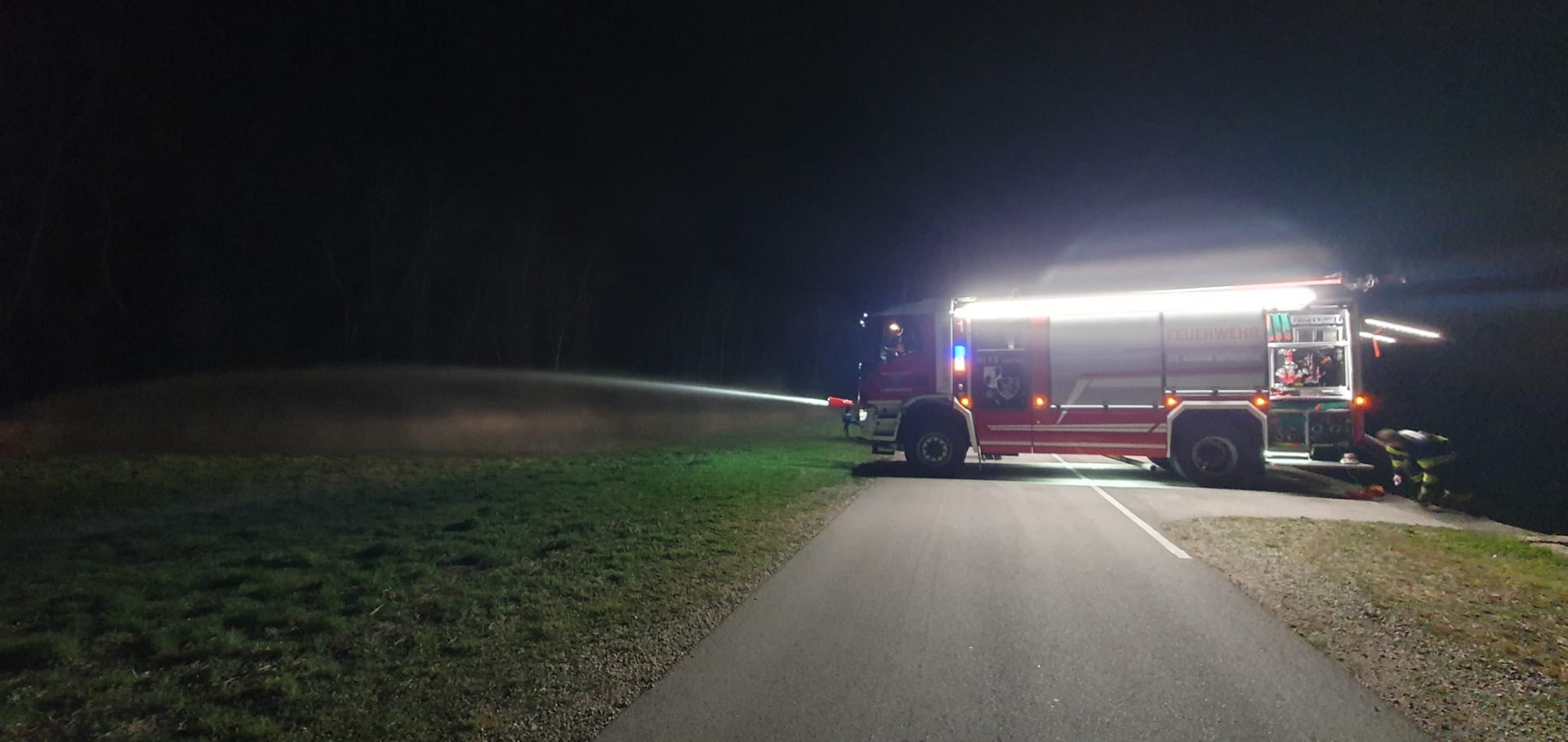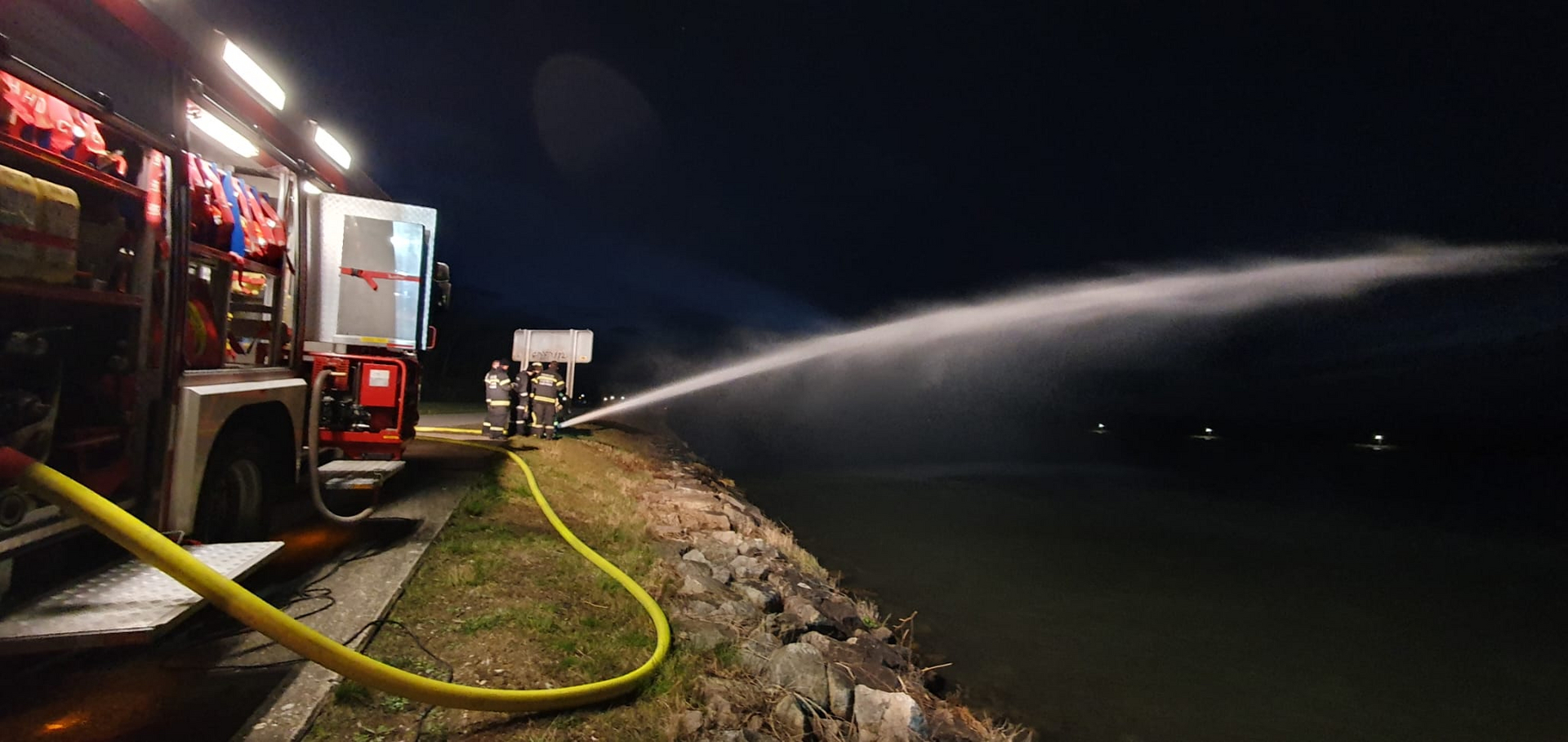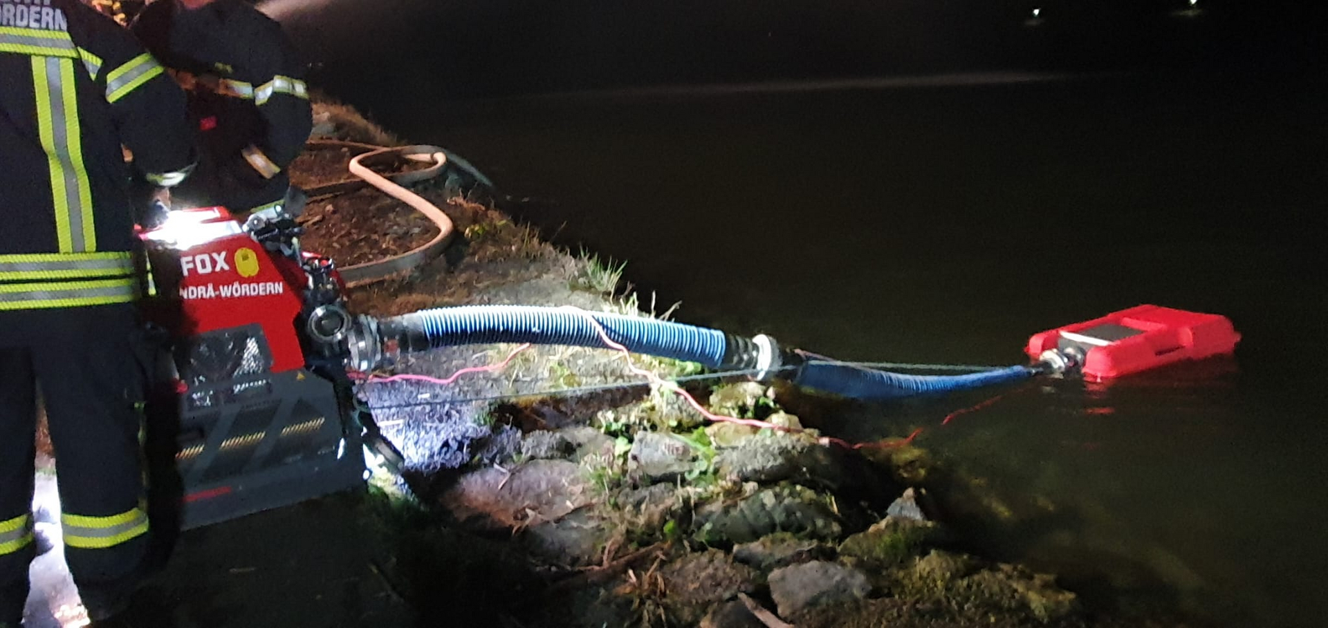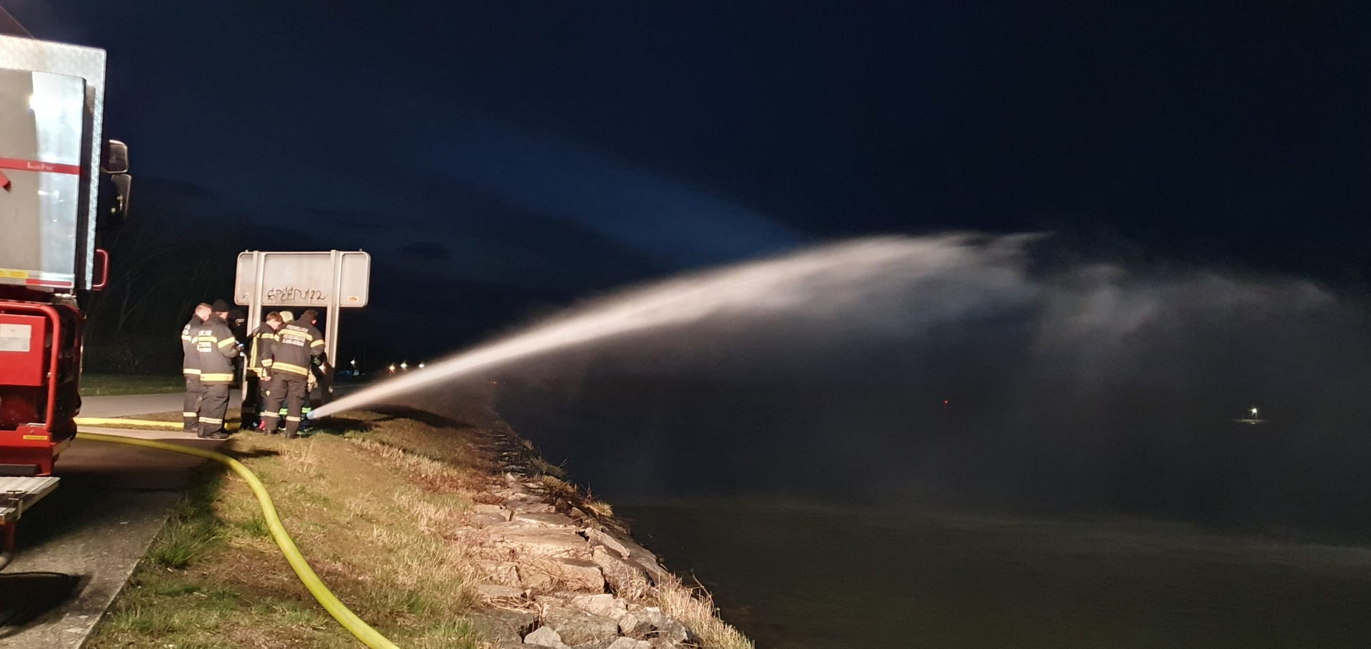Beübt wurden unter anderem das Herstellen einer Löschwasserversorgung mittels Tragkraftspritze mit Wasserentnahmestelle aus der Donau, die Brandbekämpfung mittels Frontmonitor des HLF3 und eines mobilen Wasserwerfers.