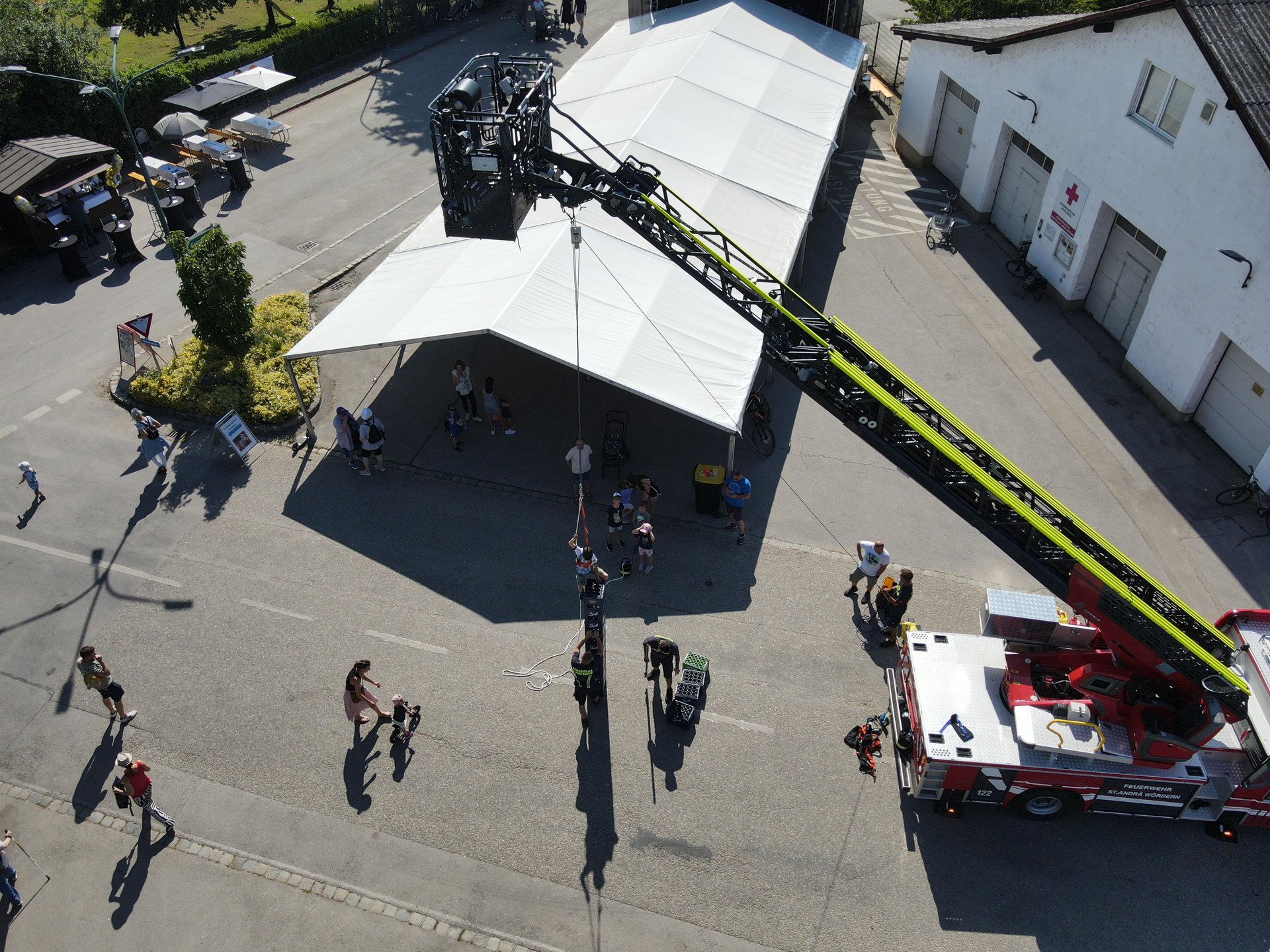 Des Weiteren besteht auch am morgigen Tag in der Zeit von 10:00 Uhr bis 12:00 Uhr die Gelegenheit, unter Zuhilfenahme der Drehleiter, das Klettern auf Kisten zu erproben.