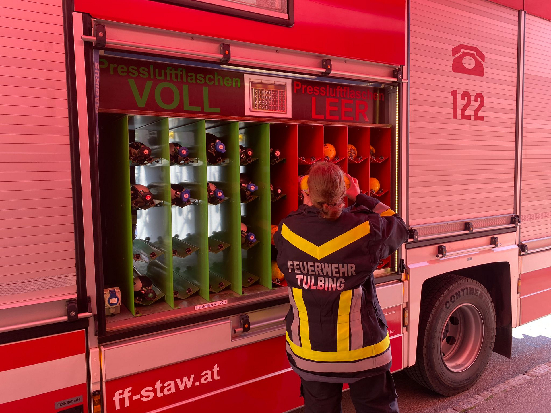 Am 21. Mai 2023 unterstütze das Atemluftfahrzeug der Feuerwehr St. Andrä-Wördern den Atemschutzkurs in Großweikersdorf. In Summe wurden 161 Atemluftflaschen neu befüllt.