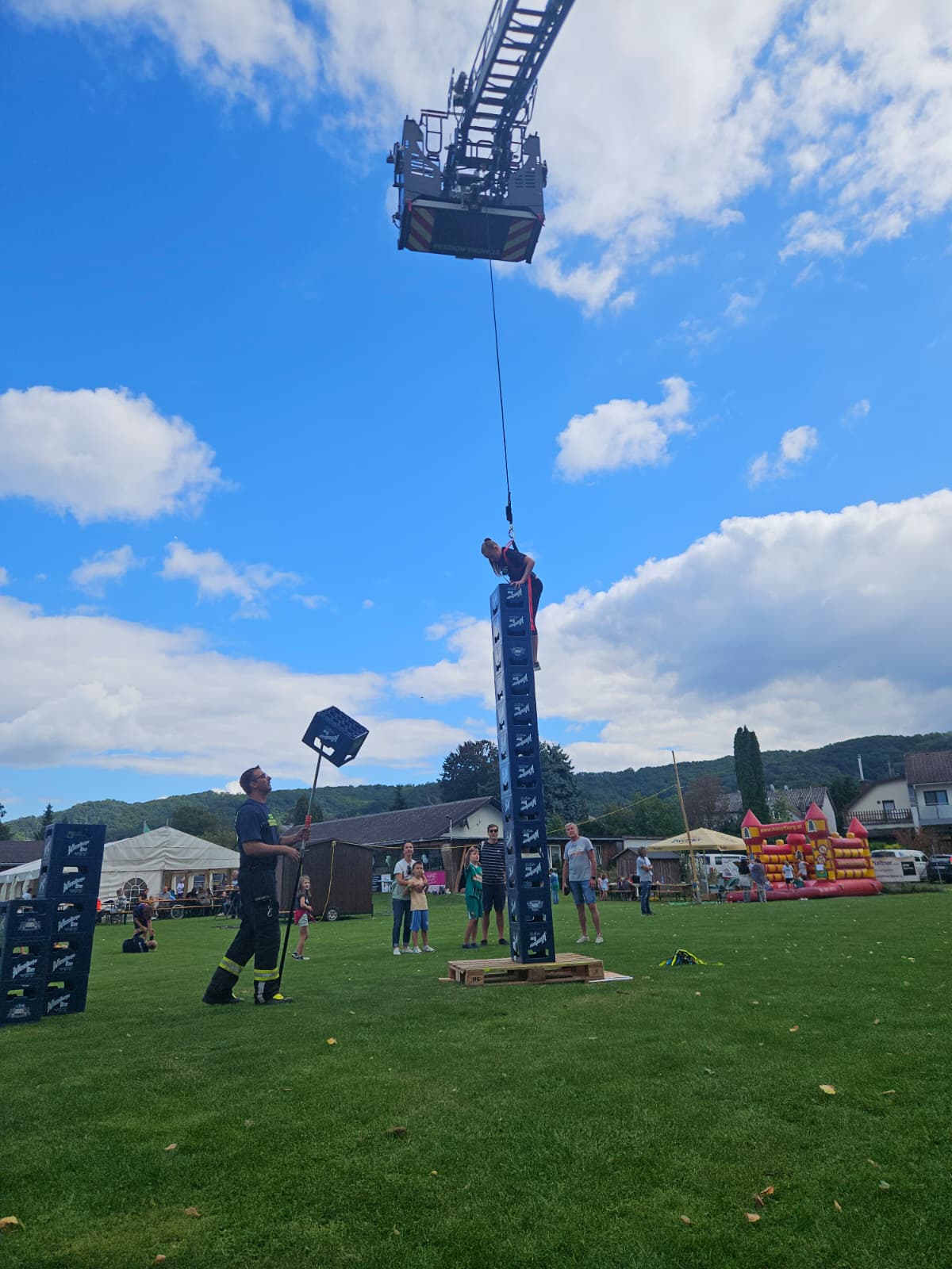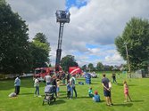 Des Weiteren wurde ein Kinderprogramm angeboten, welches zwischen 11:30 Uhr und 13:30 Uhr stattfand. Es bestand die Möglichkeit, die Feuerwehr, die Polizei und den Rettungsdienst in nächster Nähe zu betrachten. Auch unsere Drehleiter wurde eingesetzt und das Kistenklettern bot sich zum wiederholten Male an.