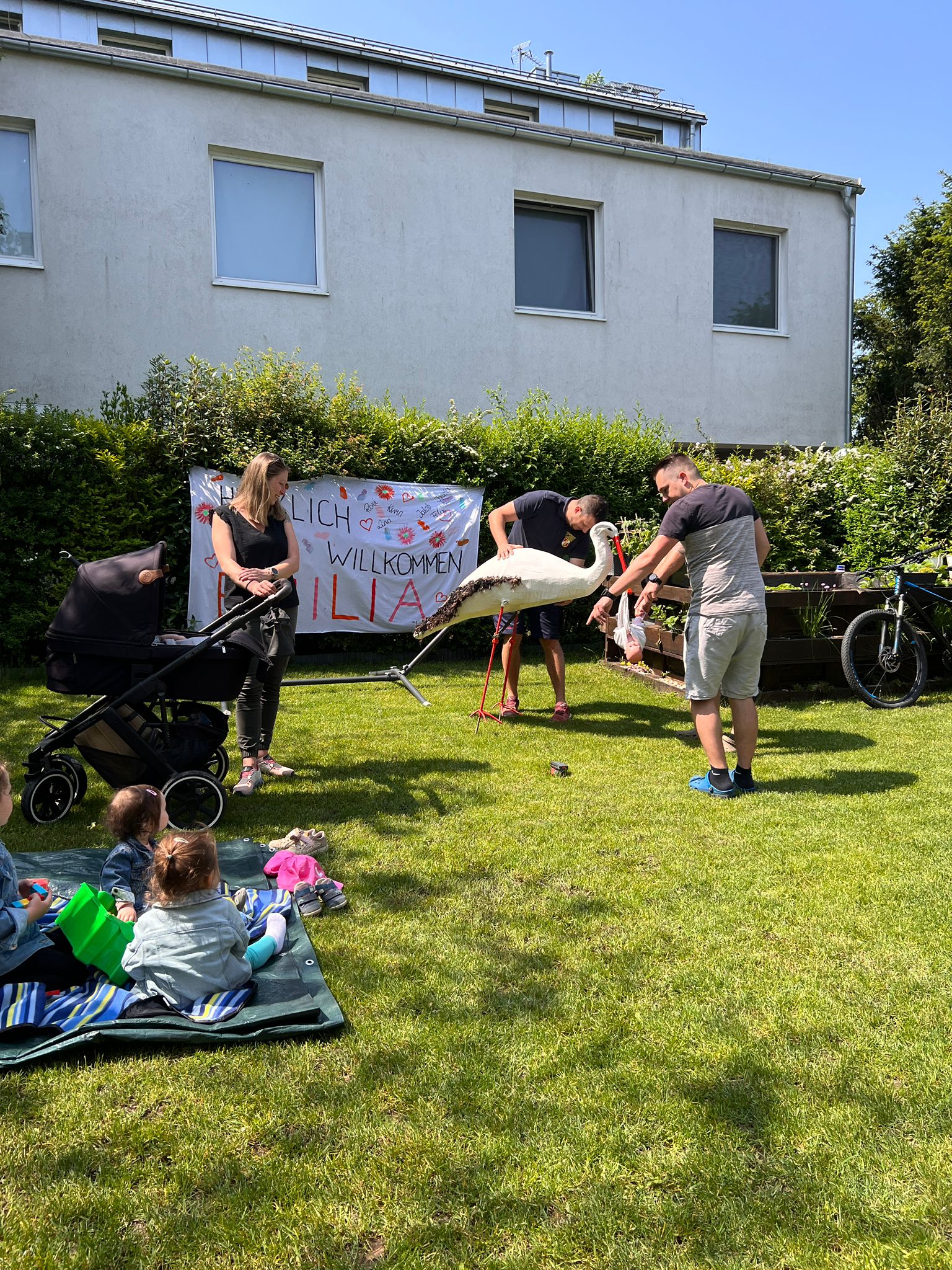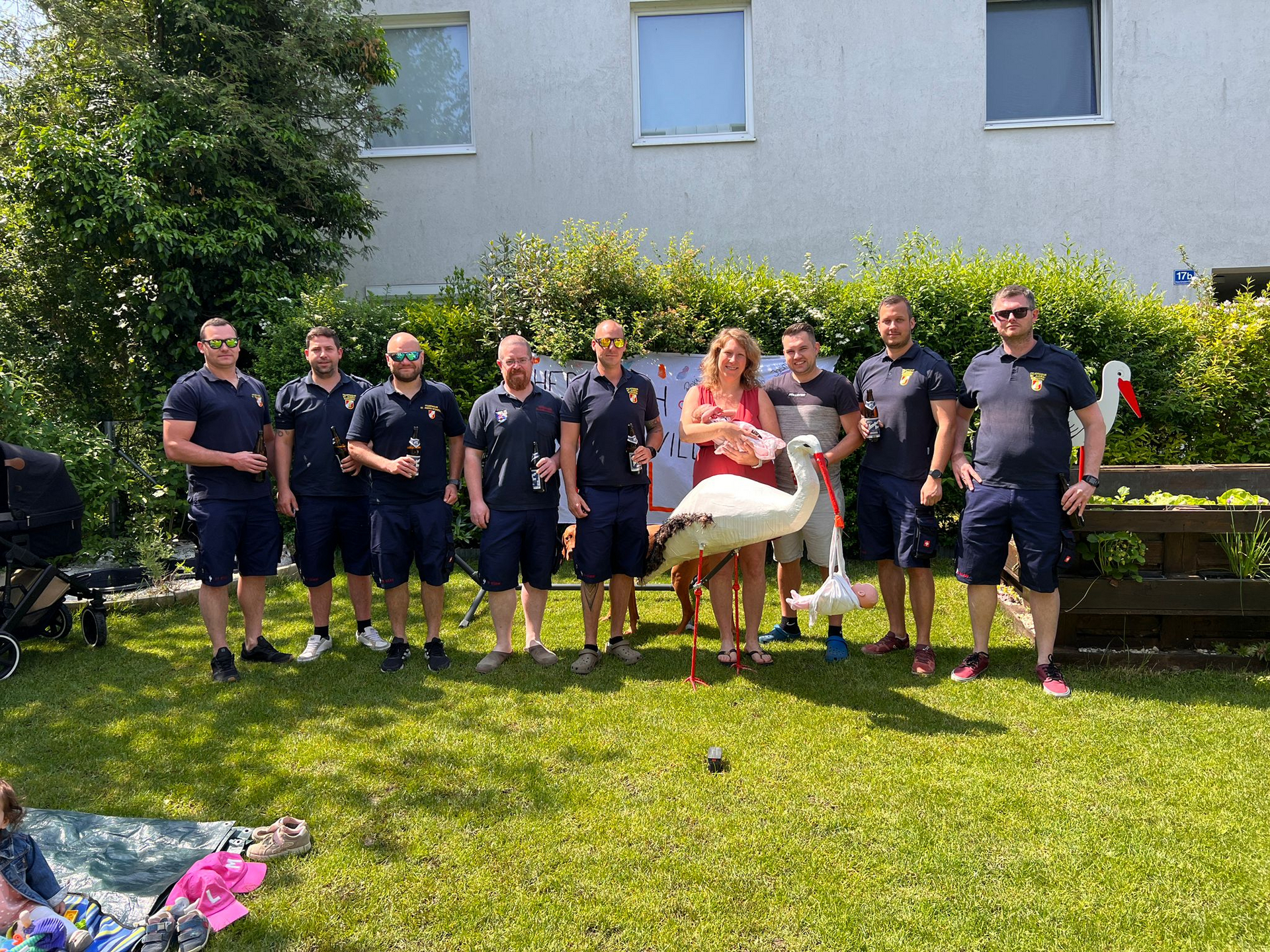 Anlässlich der Geburt von Emilia, Tochter des Feuerwehrmannes Damian Bochnak, wurde von der Freiwilligen Feuerwehr St.Andrä-Wördern am 28. Mai 2023 ein Storch aufgestellt.